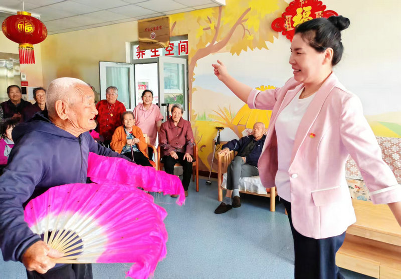 圖1為:2025年9月9日,六師奇臺110社區(qū)吾家樂寶養(yǎng)老院院長史云智(左一),組織在院長者真開展“緬懷偉大領(lǐng)袖,傳承紅色精神”歌詠比賽活動,用紅色革命歌曲和最誠摯的情感,抒發(fā)自己對偉大領(lǐng)袖毛主席的深切懷念。