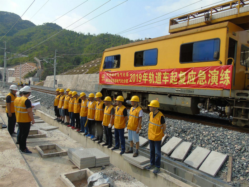根據(jù)《生產(chǎn)安全事故應(yīng)急條例》中相關(guān)規(guī)定及集團(tuán)公司、城市建設(shè)分公司要求,梅汕項(xiàng)目部電氣化分部聯(lián)合機(jī)械設(shè)備中心第一機(jī)械隊(duì)于4月24日上午在在湯南隧道進(jìn)口軌道車停放點(diǎn)處進(jìn)行了《軌道車脫線起復(fù)應(yīng)急預(yù)案》培訓(xùn)與演練活動。