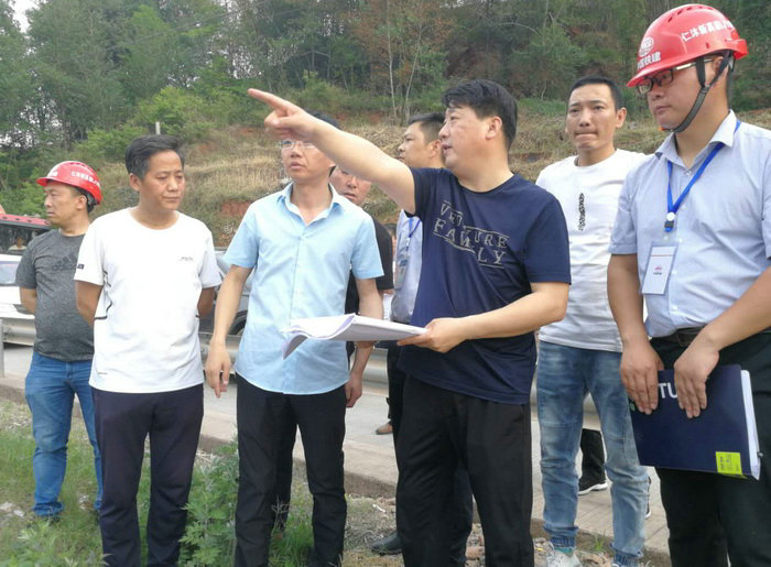 4月25日,莊乾理董事長在對管區(qū)沿線進行現(xiàn)場踏勘時,與前來檢查工地的仁沐新高速公路有限公司董事長劉勇、總經(jīng)理姜杰明、副總經(jīng)理向可明一行巧遇。在現(xiàn)場,業(yè)主方聽取了項目負責(zé)人關(guān)于LJ16標段情況介紹,以及項目部臨時設(shè)施場站規(guī)劃情況匯報。然后,莊乾理董事長就項目總體規(guī)劃部署及施工思路與仁沐公司董事長劉勇進行了交流。
