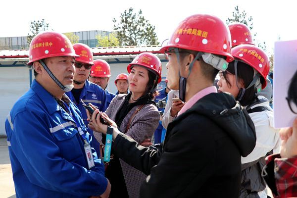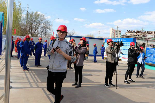 隨后,各路記者拿起“長槍短炮”紛紛深入施工現(xiàn)場,他們有的和一線工人聊天、有的向技術(shù)人員了解施工中的具體情況,現(xiàn)場的安全文明施工、環(huán)境保護(hù)和各種安全警示牌、物資材料堆碼井井有條,員工休息室干凈利落,施工現(xiàn)場人來人往,機(jī)聲隆隆,緊張有序,這些忙而不亂的場景,均被記者們一覽無余,盡收眼底。經(jīng)過近40分鐘認(rèn)真細(xì)致的采訪,記者們帶著各自的收獲,踏上了返程的歸途。