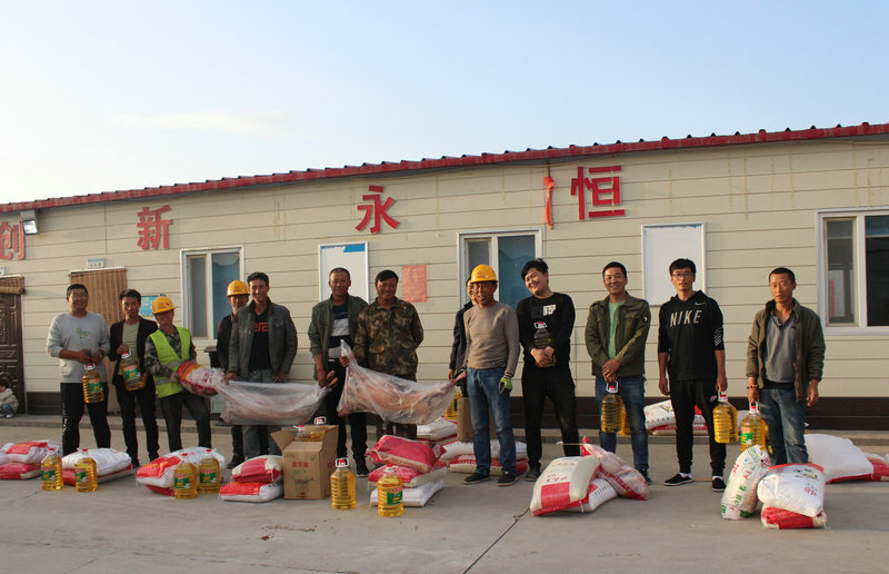 4月28日下午,在第129個(gè)國(guó)際勞動(dòng)節(jié)來(lái)臨之際,為營(yíng)造歡樂(lè)祥和的節(jié)日氛圍,中國(guó)鐵建大橋工程局京藏5標(biāo)項(xiàng)目部對(duì)節(jié)日期間仍堅(jiān)守在生產(chǎn)一線的12個(gè)施工隊(duì)伍致以親切的慰問(wèn),送上12袋大米、12袋白面、24桶植物油、150斤羊肉、390斤豬肉等慰問(wèn)品,并真誠(chéng)祝愿他們節(jié)日快樂(lè)!