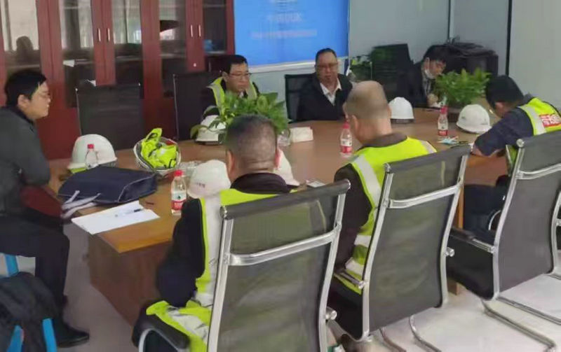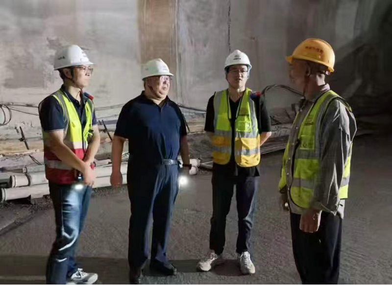 總承包部指揮長(zhǎng)李兵(左2)深入現(xiàn)場(chǎng)督導(dǎo)
