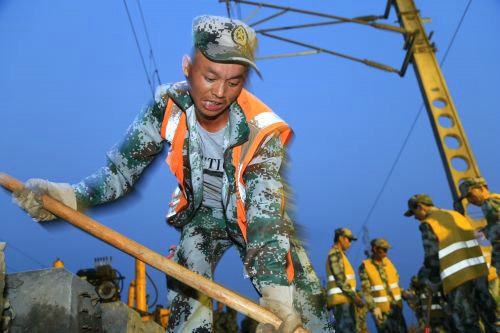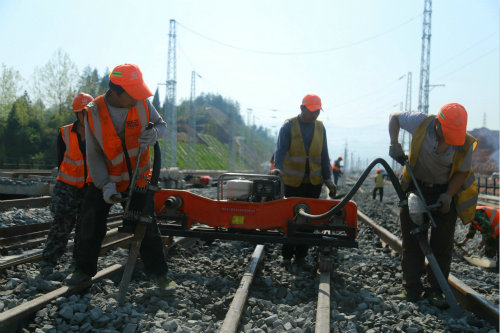 面對既有線施工難度大,人工鋪軌作業(yè)交叉頻繁,工期節(jié)點步步緊逼等系列困難,項目部全體參建員工嚴(yán)格按照“高標(biāo)準(zhǔn),嚴(yán)要求,不懈怠”的精神目標(biāo),上頂壓力,下克困難,不分節(jié)假,晝夜開工,全面掀起大干快上熱潮。