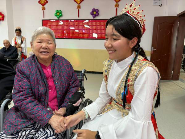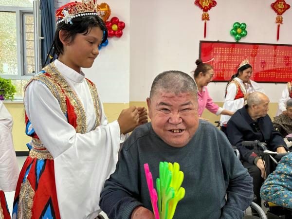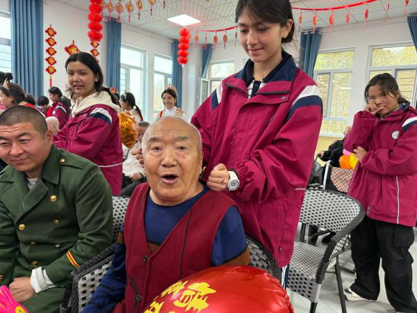 活動(dòng)現(xiàn)場(chǎng)暖意融融。師生們精心準(zhǔn)備了具有民族特色的維吾爾族舞蹈,靈動(dòng)的舞姿、歡快的旋律贏得了長(zhǎng)者們陣陣掌聲,不少老人跟著節(jié)奏輕輕拍手,臉上洋溢著喜悅的笑容,養(yǎng)老院里瞬間充滿了歡聲笑語(yǔ)。表演結(jié)束后,師生們迅速切換“志愿模式”,有的拿起掃帚、抹布,認(rèn)真清掃養(yǎng)老院庭院的落葉與雜物;有的學(xué)生則主動(dòng)走到長(zhǎng)者身邊,輕聲細(xì)語(yǔ)地詢問身體狀況,為他們捶背捏肩,用嫻熟又輕柔的動(dòng)作緩解長(zhǎng)輩們的疲憊。