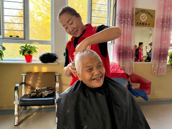 義剪區(qū)前,志愿者理發(fā)師耐心詢問(wèn)每位老人的需求,輕柔梳理、細(xì)致修剪,一邊操作一邊與老人嘮家常,嫻熟的手藝和貼心的交流讓老人們展露笑顏,理完發(fā)的長(zhǎng)輩們看著鏡中精神的模樣,連連稱贊。