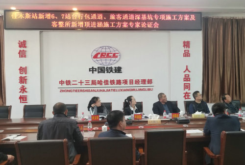 近日,佳木斯站新增6、7站臺(tái)及頂進(jìn)涵施工方案專家論證會(huì)在中鐵二十三局集團(tuán)二公司哈佳鐵路項(xiàng)目部八樓會(huì)議室召開(kāi),會(huì)議對(duì)方案的可行性進(jìn)行了論證,為早日動(dòng)工奠定了基礎(chǔ)。