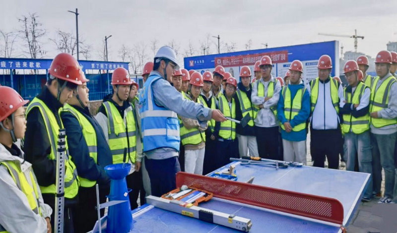 在“理論+實戰(zhàn)”的培養(yǎng)模式下,黃沛琦僅用數(shù)月便完成蛻變:不僅成長為監(jiān)理部得力助手,更在新生認(rèn)知活動中扛起“講解擔(dān)當(dāng)”。他不僅清晰科普水準(zhǔn)儀、經(jīng)緯儀、回彈儀等儀器的原理與操作,更傳遞“監(jiān)理關(guān)乎工程質(zhì)量與生命安全”的職業(yè)敬畏,深深觸動在場新生,成為大家爭相學(xué)習(xí)的榜樣。