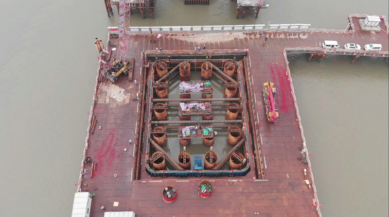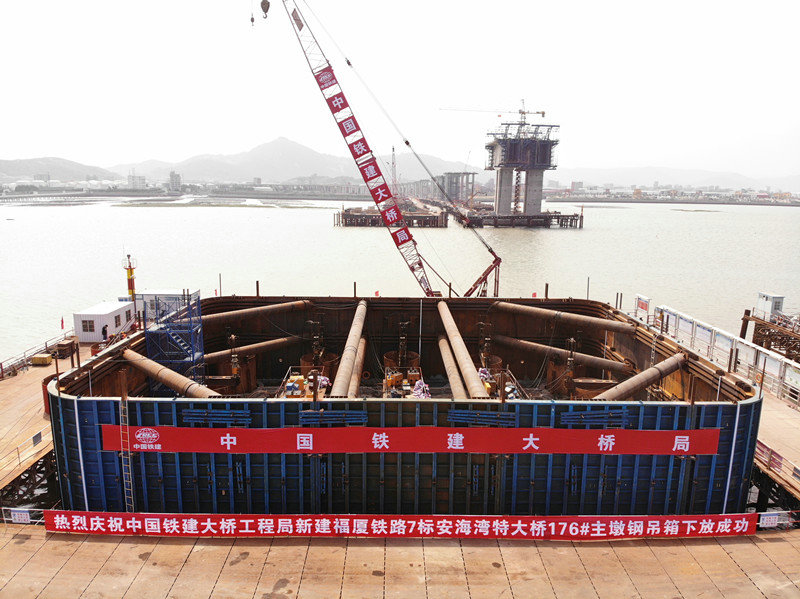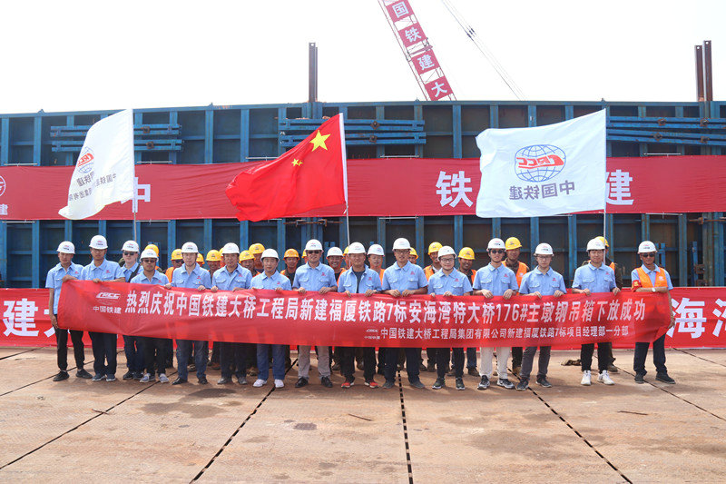 5月5日下午,新建福廈鐵路7標項目安海灣特大橋176#主墩鋼-混組合吊箱成功下放,下一步將開始主墩承臺施工,標志著安海灣特大橋主墩施工邁入新的階段。176#主墩鋼-混組合吊箱是福廈7標首個下放的鋼-混組合吊箱,為后續(xù)鋼-混組合吊箱下放施工提供了成功經驗和良好基礎。