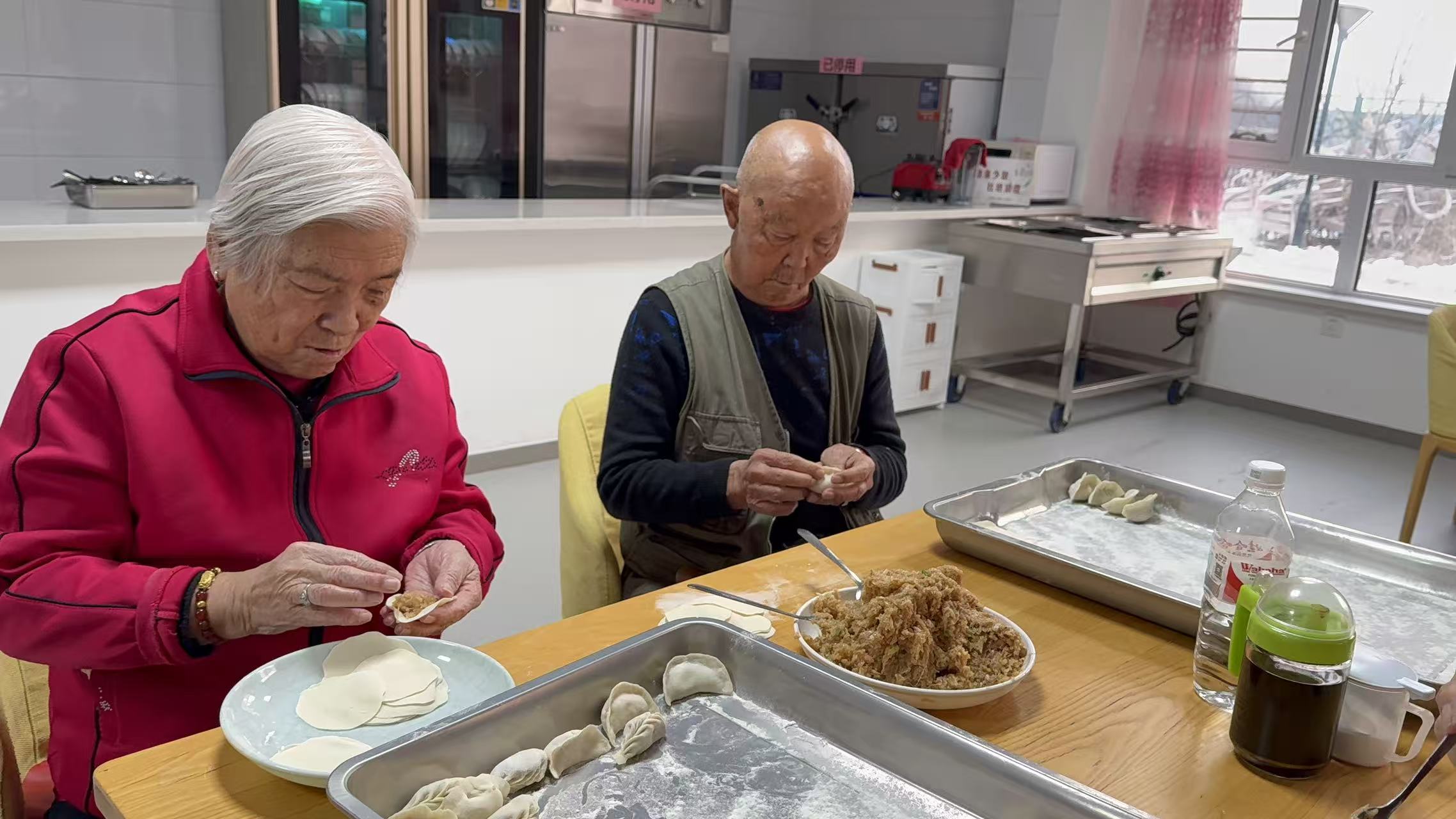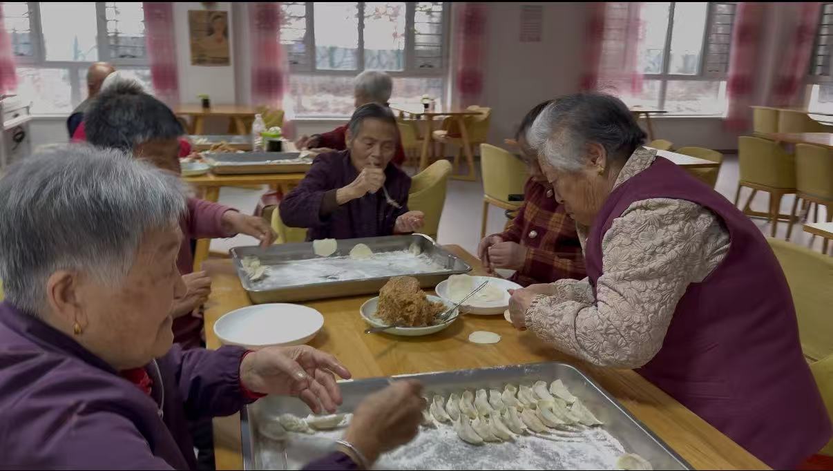 “在這兒和大家一起包餃子,比自己在家熱鬧多了,吃著也更香!”一位老人笑著說。
