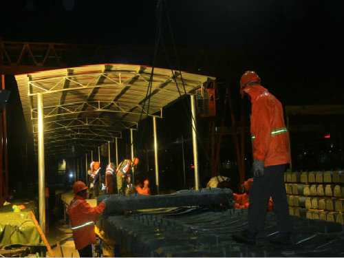 目前,項目部人工鋪軌工作已進入全面大干階段,作為“軍需糧草”供應部門的綜合隊,任務十分繁重,工人們晝夜開展軌排生產(chǎn)已成為常態(tài)化。