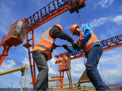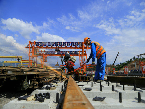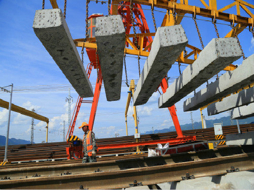 據(jù)該分部負責人介紹,項目部目前主要擔負著黔張常鐵路正線鋪軌43.178單線公里的施工任務,管內(nèi)全線鋪軌均采取人工、機械用工具軌鋪設好后再進行“換鋪法”施工工藝,即先將一根根枕木在鋪軌基地和施工現(xiàn)場錨固好,通過路基上砟攤鋪碾壓后將枕木一根根布設到位,人工將運往現(xiàn)場的25米鋼軌進行連接組裝完成,初整道達到換鋪長軌條件后,再進行長鋼軌換鋪,隨后經(jīng)過焊軌、應力放散等系列工序過后,最終形成無縫線路。