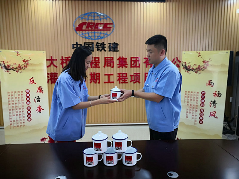 “送吉祥”環(huán)節(jié),邊書記說到,送給大家一個標(biāo)有“不忘初心,牢記使命”的70年代老式搪瓷杯,希望時刻提醒大家,既要發(fā)揚70年代老一輩艱苦奮斗的精神,又要牢記使命,砥礪奮進。
