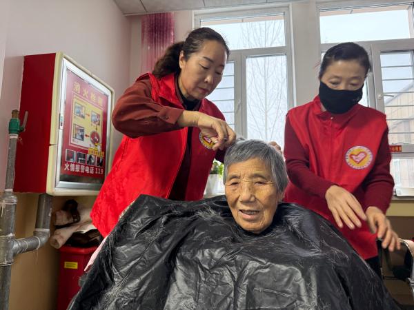 活動現(xiàn)場暖意融融,志愿服務隊的志愿者們兵分兩路,貼心開展服務。一邊是技藝嫻熟的理發(fā)志愿者,他們耐心詢問每位老人的需求,細心修剪頭發(fā),一把剪刀、一把梳子在手中翻飛,不一會兒就為老人們剪出了清爽利落的發(fā)型,讓老人們?nèi)莨鉄òl(fā),臉上洋溢起滿意的笑容。