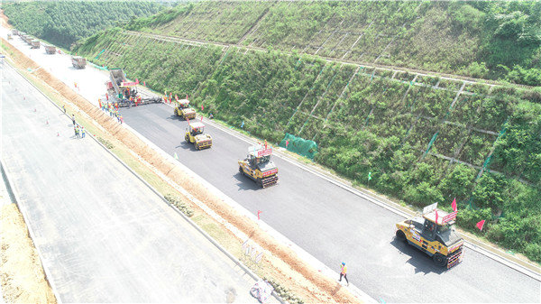 “清云路面項(xiàng)目瀝青下面層試驗(yàn)段攤鋪施工正式開始······”