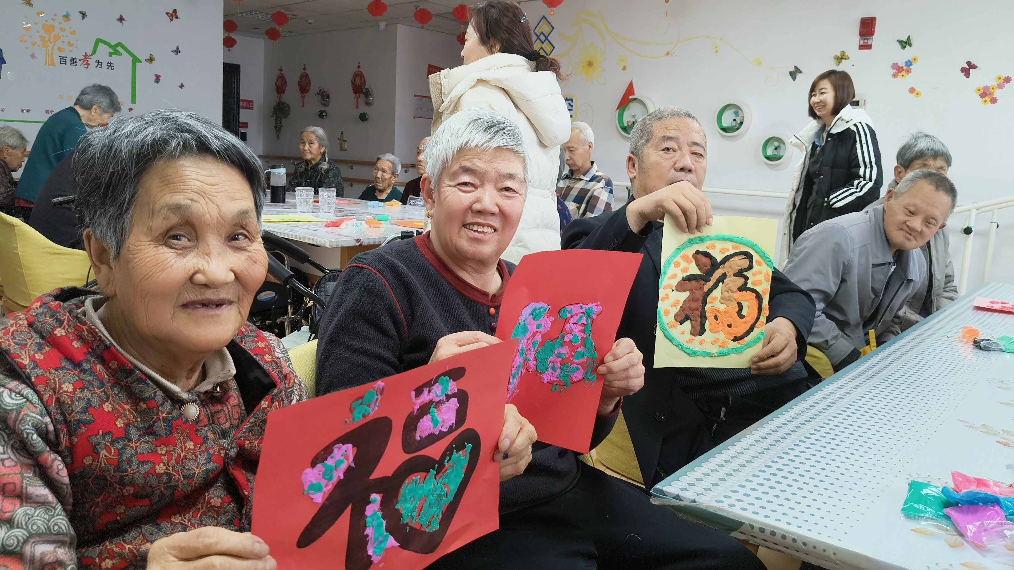 看著桌上擺滿了形態(tài)各異、憨態(tài)可掬的“福”字作品,老人們互相展示、拍照留念,活動室里充滿了歡聲笑語。這不僅是一次手工制作,更是一次心靈的陪伴與慰藉。