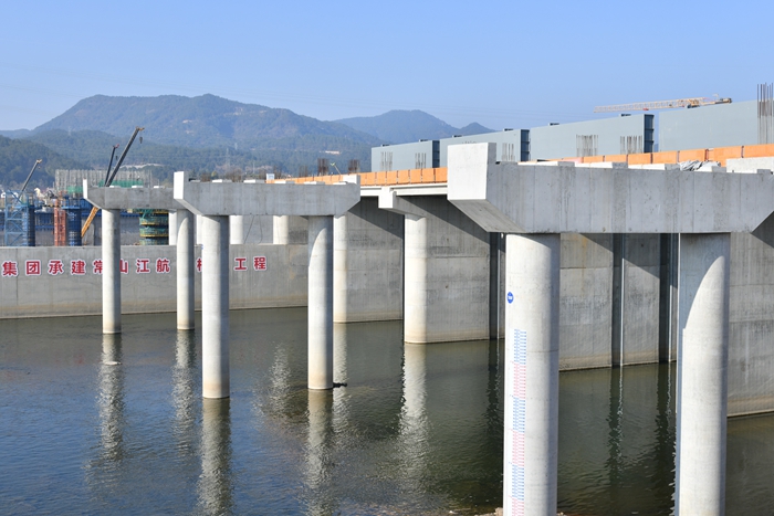 招賢樞紐涵蓋導(dǎo)流墻、泄洪閘、船閘、發(fā)電站、閘首橋、人行天橋、全長1190米的防洪堤、箱涵等構(gòu)成。招賢閘首橋設(shè)計(jì)樁基52根、墩臺(tái)52座,最長樁基57米、最高墩15米,26跨,最小跨30米,最大跨40米,橋面寬12米,2車道,T梁156片。該橋2024年初開工,工期3年,建成后將成為常山江兩岸村鎮(zhèn)居民出行、農(nóng)產(chǎn)品運(yùn)輸又一過江便捷通道,對改善民生,促進(jìn)當(dāng)?shù)亟?jīng)濟(jì)發(fā)展具有重要意義。