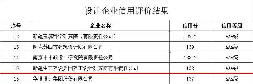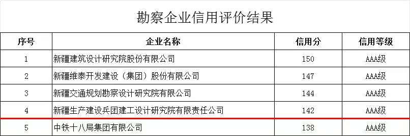 據(jù)悉,本次申報信用評價的勘察單位共計799家,榮獲AAA級信用評價勘察單位僅21家,設(shè)計院排名第4;申報信用評價的設(shè)計單位共計2833家,榮獲AAA級信用評價設(shè)計單位僅61家,設(shè)計院排名第15,含金量十足。這一優(yōu)異成果,既是對設(shè)計院多年來堅守誠信經(jīng)營理念、深耕勘察設(shè)計主業(yè)、積極踐行社會責(zé)任的充分肯定,也是對其立足兵團(tuán)、服務(wù)十一師、輻射疆內(nèi)外發(fā)展定位的有力印證。