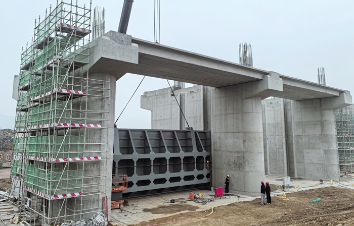 該樞紐泄洪閘首扇閘門安裝成功,為后續(xù)安裝提供了可復(fù)制的現(xiàn)成做法,效率會(huì)更高,兩天能安裝、焊接完成一扇閘門,完成無(wú)縫焊接的閘門將升起停留在空中。在每一扇閘門上方將安裝一臺(tái)啟閉機(jī)控制閘門升降。