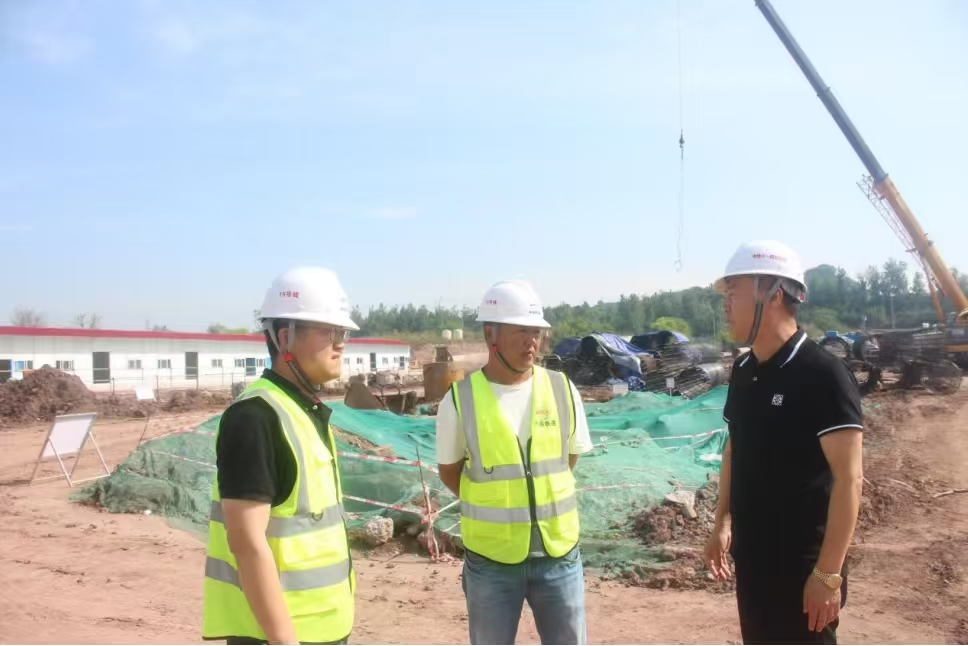 18標兩任項目經理趙建偉(右1)、王賓(左1)、副經理張盛偉(右2)在現場解決有關施工問題