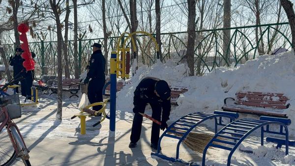 活動中,民警們不畏嚴(yán)寒、分工協(xié)作,揮舞著鐵鍬、掃帚,鏟冰除雪、清掃路面,干勁滿滿。大家齊心協(xié)力,不放過一處結(jié)冰路段、不留一處安全隱患,忙碌的身影在皚皚白雪中格外溫暖。經(jīng)過認(rèn)真清掃,院內(nèi)道路恢復(fù)干凈通暢,徹底解決了老人出行難的問題。