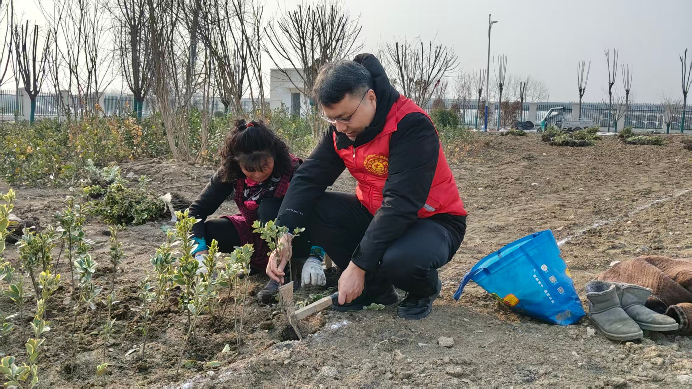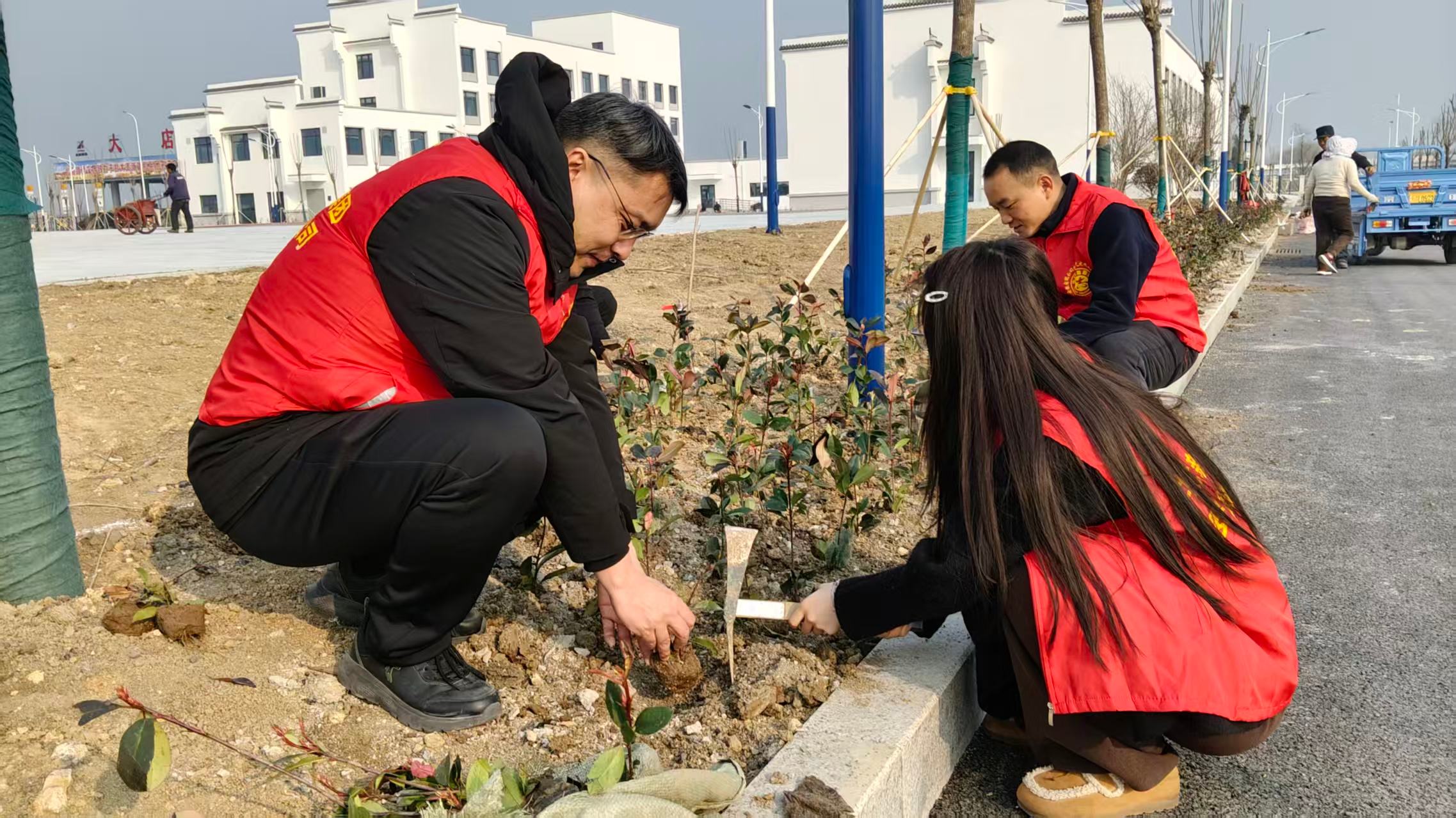 植樹現(xiàn)場(chǎng)黨員率先垂范,扶苗培土、提水澆灌,每個(gè)環(huán)節(jié)都一絲不茍。青年志愿者們分工協(xié)作,配合默契,展現(xiàn)出新時(shí)代青年的責(zé)任擔(dān)當(dāng)。經(jīng)過兩個(gè)多小時(shí)的辛勤勞動(dòng),共栽種國槐、白蠟樹、櫸樹等樹苗30余株,為初春的大地增添了一片新綠。