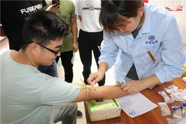 8名鐵建醫(yī)院醫(yī)生組成的醫(yī)療隊(duì)為一線項(xiàng)目部工作人員提供了健康體檢和職業(yè)健康體檢服務(wù),并及時(shí)將個(gè)人體檢報(bào)告反饋給員工本人。此次體檢內(nèi)容包括物理檢查、眼科、口腔、血常規(guī)、肝腎功能、心電圖、胸部DR、彩超、泌尿生殖系統(tǒng)等23種項(xiàng)目,體檢內(nèi)容全面詳細(xì)。