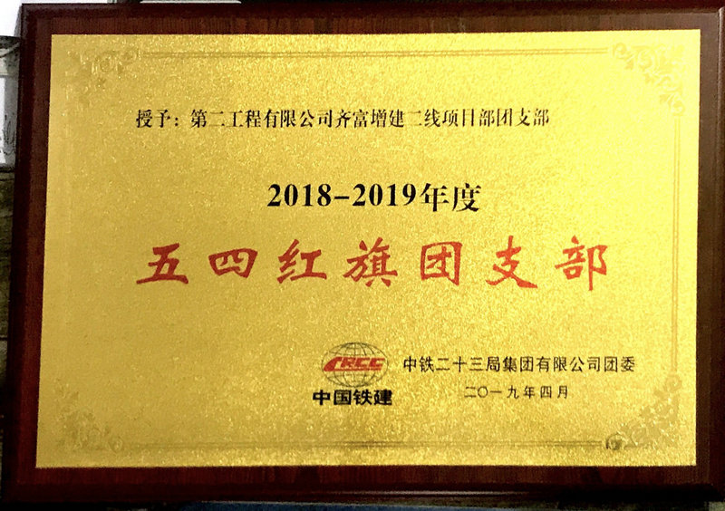 中鐵二十三局集團(tuán)二公司齊富項(xiàng)目部團(tuán)支部自2015年成立以來(lái),在公司黨委和團(tuán)委的正確領(lǐng)導(dǎo)下,大力穩(wěn)抓團(tuán)的基層建設(shè),在推進(jìn)團(tuán)員青年思想政治教育、做人育人、創(chuàng)造創(chuàng)新、企業(yè)文化建設(shè)等方面,取得了顯著的成績(jī),在2018-2019年度獲得了集團(tuán)公司授予的“五四紅旗團(tuán)支部”榮譽(yù)稱號(hào)。