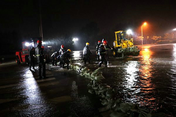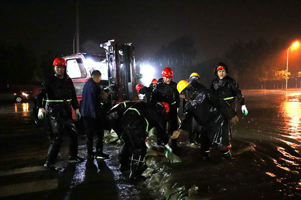 道路積水越來(lái)越深,處理不好將直接影響基坑安全,好在項(xiàng)目部對(duì)防汛應(yīng)急物資準(zhǔn)備充分,防汛措施得力,人員到位,使搶險(xiǎn)工作達(dá)到了忙而不亂的效果。在汽車(chē)公園站北區(qū),只見(jiàn)裝載機(jī)在大雨中來(lái)回穿梭,盾構(gòu)工區(qū)經(jīng)理劉漢洲、李原在現(xiàn)場(chǎng)帶領(lǐng)搶險(xiǎn)隊(duì)員不停的裝沙袋、碼沙袋,質(zhì)檢部部長(zhǎng)汲生財(cái)一邊負(fù)責(zé)指揮環(huán)島的搶險(xiǎn),一邊協(xié)調(diào)指揮汽車(chē)公園站的搶險(xiǎn)隊(duì)員。工區(qū)經(jīng)理蘇曉亮帶領(lǐng)30多名搶險(xiǎn)隊(duì)員奮戰(zhàn)在捷達(dá)大路站。尤其讓人感動(dòng)的是,駐地監(jiān)理工程師車(chē)振宇、李紅成等同志也和搶險(xiǎn)隊(duì)員一起并肩戰(zhàn)斗在搶險(xiǎn)現(xiàn)場(chǎng),他們這種對(duì)工作認(rèn)真負(fù)責(zé)的態(tài)度和無(wú)私奉獻(xiàn)的精神,極大地鼓舞著每個(gè)搶險(xiǎn)隊(duì)員的士氣。在搶險(xiǎn)過(guò)程中,有的隊(duì)員雨鞋被水灌滿了、衣服濕透了,但是,卻自始至終沒(méi)有一個(gè)退縮的。