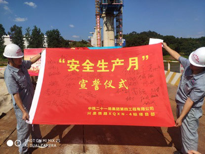 近日,中鐵二十一局四公司興泉鐵路4標(biāo)項目部全體職工在琴江特大橋舉行了2019年“安全生產(chǎn)月”及“安全生產(chǎn)萬里行”活動宣誓及簽字儀式。