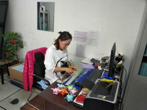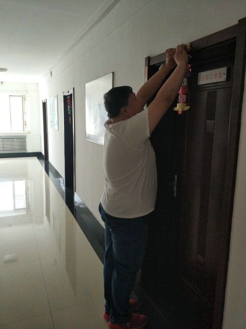 繽彩葫蘆,節(jié)日寄福。一張張彩紙在指尖上跳動,折、壓、捏、吹,五彩斑斕的紙葫蘆便疊成了,兩角的、四角的,一個個猶如俏皮的精靈,在門上隨風(fēng)搖擺,應(yīng)和著一張張笑臉,為節(jié)日增添了和諧的氣息,這些紙葫蘆寄托著平安,寄托著哈佳情懷與節(jié)日情懷,包含了哈佳五年來積累的人氣與希望。