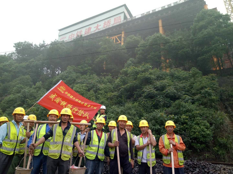 由于情況緊急,鐵路部門(mén)已封閉鐵路,暫停通車,并向我單位請(qǐng)求支援。我單位接到鐵路部門(mén)求援后,立即啟動(dòng)抗洪搶險(xiǎn)應(yīng)急預(yù)案,停止一切施工,組織現(xiàn)場(chǎng)全體人員組成搶險(xiǎn)隊(duì),趕赴救援現(xiàn)場(chǎng),配合鐵路部門(mén)進(jìn)行搶險(xiǎn)工作。由于此段鐵路緊鄰山體和長(zhǎng)江,一切救援車輛和物資均無(wú)法到達(dá)搶險(xiǎn)現(xiàn)場(chǎng),搶險(xiǎn)隊(duì)員迅速克服一切困難,就地取材,采用人工堆碼沙袋的方法加固沖垮的路基邊坡,保護(hù)好通信電纜,采用手提和肩挑橡膠桶的方式清理水溝的泥沙。