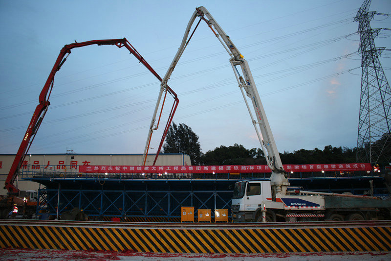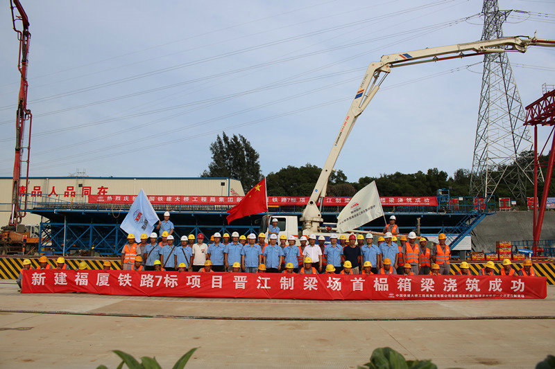 6月5日,天高云淡,陽(yáng)光明媚,中國(guó)鐵建大橋局福廈鐵路7標(biāo)晉江制梁場(chǎng)一片熱鬧景象,一紅一白兩臺(tái)混凝土輸送泵車大臂高聳入云,各種制梁設(shè)備整裝待發(fā),施工人員精神抖擻,在一陣鞭炮聲中,首榀箱梁開(kāi)始澆筑,經(jīng)過(guò)6個(gè)小時(shí)的連續(xù)施工,宣告預(yù)制成功,標(biāo)志著福廈鐵路7標(biāo)箱梁預(yù)制施工全面拉開(kāi)序幕。