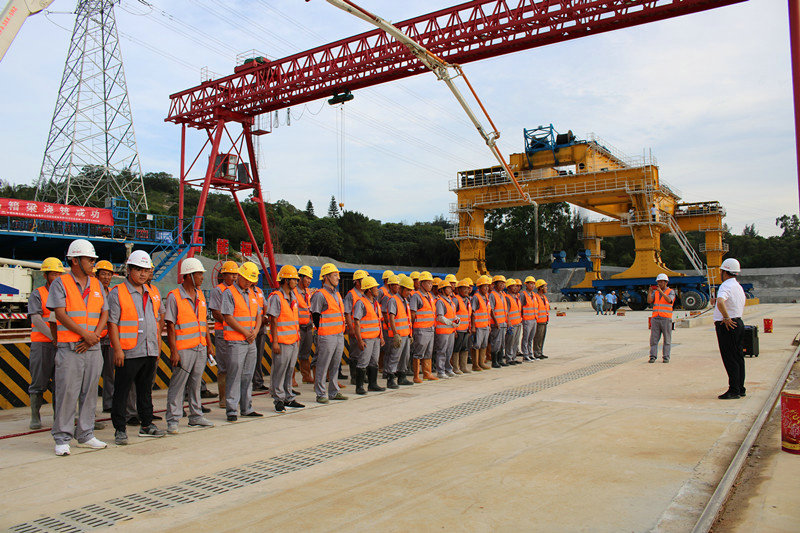 為確保首榀箱梁順利澆筑,梁場(chǎng)項(xiàng)目領(lǐng)導(dǎo)班子召開(kāi)施工部署會(huì),精心組織、細(xì)化分工、分解任務(wù)、保證施工過(guò)程環(huán)環(huán)相扣。晉江制梁場(chǎng)項(xiàng)目部上場(chǎng)以來(lái),班子成員發(fā)揮帶頭作用,帶領(lǐng)項(xiàng)目部全體員工克服征地拆遷難,臨建工程難度大等困難,不畏艱難、超前謀劃、統(tǒng)籌安排,對(duì)梁場(chǎng)施工任務(wù)不斷進(jìn)行調(diào)整。同時(shí),認(rèn)真加強(qiáng)對(duì)一線工人的崗前技術(shù)交底、安全培訓(xùn),嚴(yán)把過(guò)程質(zhì)量控制,確保了首榀箱梁的順利灌注,為晉江制梁場(chǎng)箱梁批量生產(chǎn)奠定堅(jiān)實(shí)基礎(chǔ)。