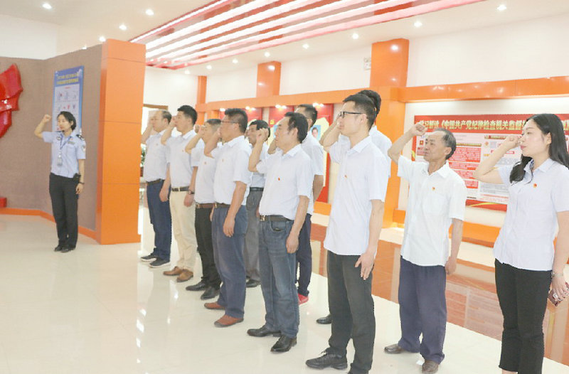 在陽光廳,講解員從新中國歷代領(lǐng)導(dǎo)人對(duì)反腐倡廉的要求,教育大家必須加強(qiáng)廉政學(xué)習(xí),時(shí)刻不忘共產(chǎn)黨員的初心使命,以貪腐為恥,以為人民服務(wù)為榮,用制度約束自己,把權(quán)力關(guān)在制度的籠子里,堅(jiān)守道德底線,樹牢“四個(gè)意識(shí)”,堅(jiān)持“四個(gè)自信”,做到“兩個(gè)維護(hù)”,始終牢記廉政建設(shè)沒有職權(quán)大小之分,腐敗墮落更沒有崗位輕重之別。要進(jìn)一步筑牢黨員干部拒腐防變的思想道德防線,吸取教訓(xùn),時(shí)刻提高警惕,做到警鐘長鳴,規(guī)矩做人,踏實(shí)做事,爭(zhēng)當(dāng)優(yōu)秀共產(chǎn)黨員。講解員還帶領(lǐng)大家重溫了入黨誓詞。