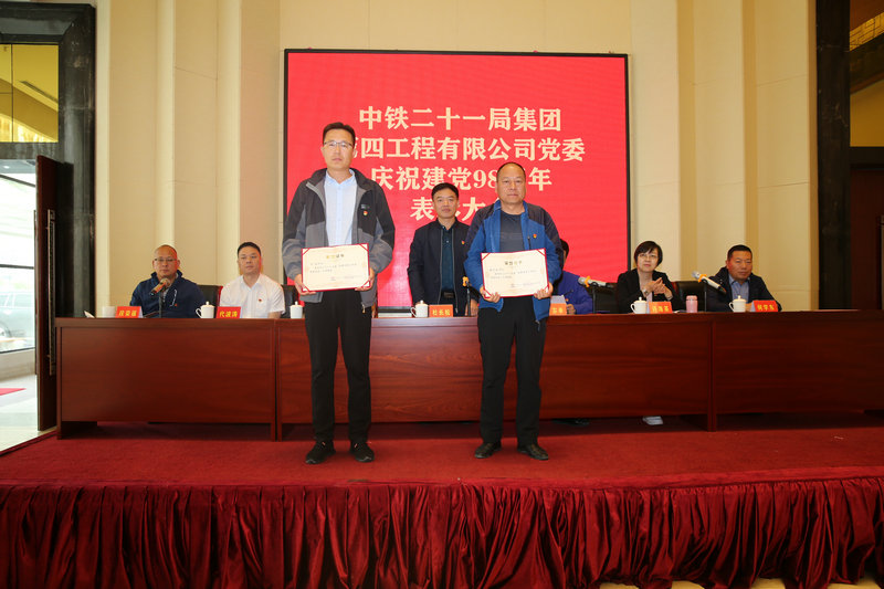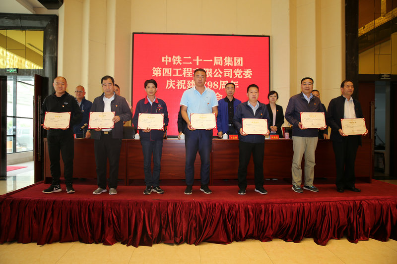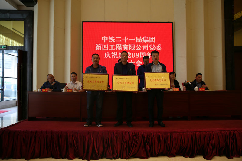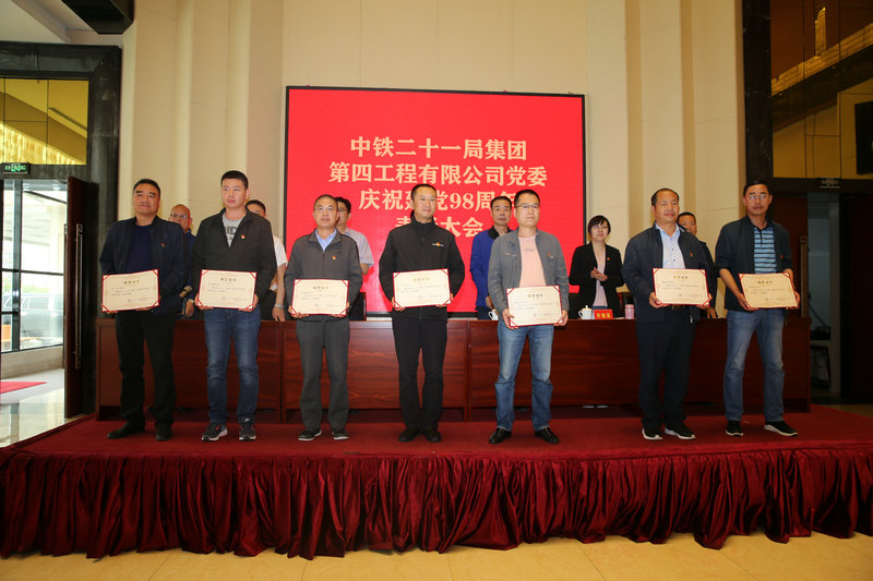 6月27日下午,中鐵二十一局四公司在甘肅民樂召開建黨98周年表彰大會(huì),隆重表彰一年來(lái)公司涌現(xiàn)出的一批先進(jìn)基層黨支部、優(yōu)秀共產(chǎn)黨員和優(yōu)秀黨務(wù)工作者。中鐵二十一局四公司黨委副書記、紀(jì)委書記杜長(zhǎng)松、特級(jí)項(xiàng)目經(jīng)理、副總經(jīng)理卜宗舉、副總經(jīng)理、總會(huì)計(jì)師許海英、各項(xiàng)目黨支部書記、黨支部工作部部長(zhǎng)50余人參加了表彰大會(huì)。