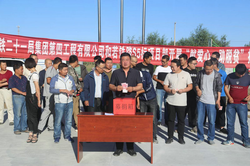 6月28日,中鐵二十一局四公司和若鐵路項(xiàng)目黨支部積極響應(yīng)公司黨委號(hào)召,開展“獻(xiàn)愛心、助脫貧”募捐活動(dòng),為河北張家口萬全區(qū)、河北張家口尚義縣、青海果洛州的貧困地區(qū)捐獻(xiàn)一份愛心。