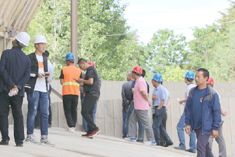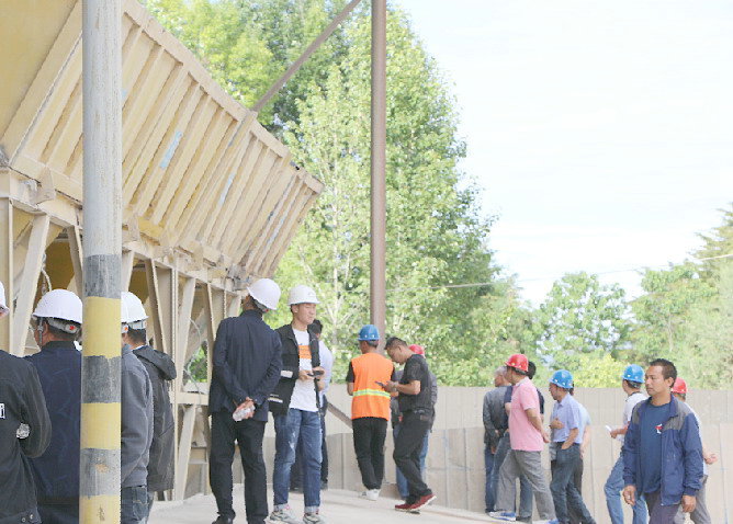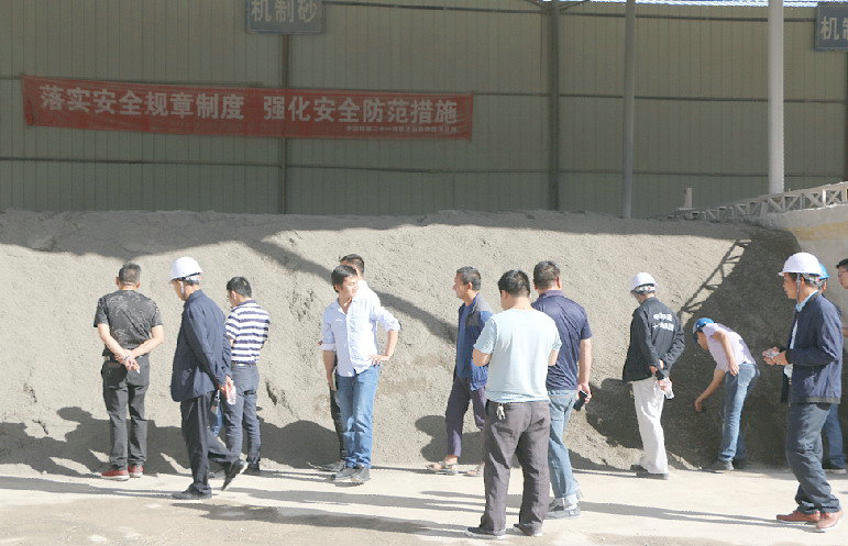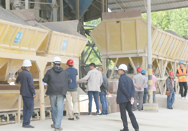 觀摩人員參觀拌合站上料設(shè)備管理