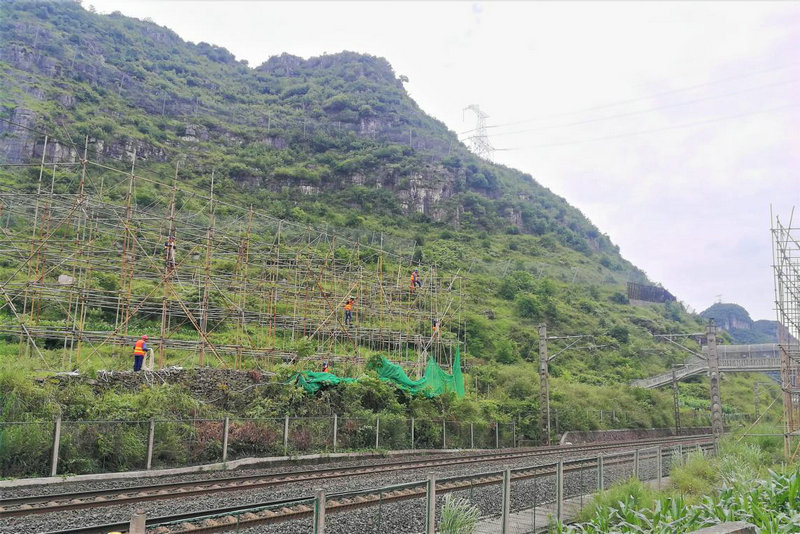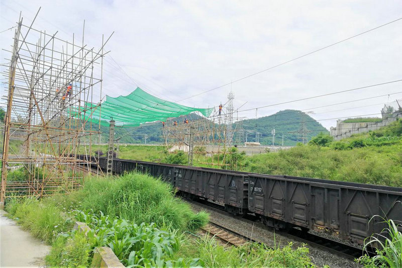 為在最短的時間內(nèi)完成遷改任務(wù),項(xiàng)目部提前做好各項(xiàng)準(zhǔn)備工作,并安排精兵強(qiáng)將盯守“天窗點(diǎn)”時間。7月1日11:25分,隨著六盤水工電段安順車間工長一聲令下,項(xiàng)目部施工人員開始拆除跨越既有滬昆線絕緣網(wǎng)施工,僅用25分鐘,提前完成了拆除絕緣網(wǎng)施工任務(wù)。