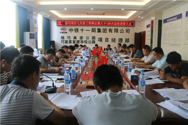 7月4日,中鐵十一局二公司格巧高速公路項(xiàng)目經(jīng)理部在會(huì)議室召開“大干120天”勞動(dòng)競賽總結(jié)表彰大會(huì)。