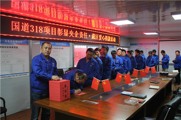 贈人玫瑰,手留余香;奉獻愛心,收獲希望。捐款活動中,項目領(lǐng)導(dǎo)率先垂范,帶頭捐款,積極參加到這次愛心捐款活動中來,項目經(jīng)理張元坤指出:國道318項目參與者是愛的實踐者,也是愛的傳遞者,這不僅體現(xiàn)在為當(dāng)?shù)匦蘼吩旄I?,更體現(xiàn)在人文關(guān)懷上;希望這一份關(guān)懷,能夠鼓勵志洛次仁同志戰(zhàn)勝病魔、早日康復(fù)。