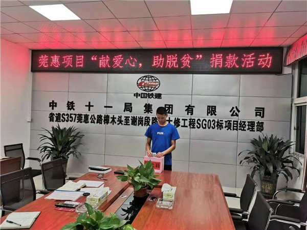 贈(zèng)人玫瑰,手留余香。7月9日,中鐵十一局二公司莞惠項(xiàng)目積極響應(yīng)公司黨委號(hào)召,落實(shí)“獻(xiàn)愛心助脫貧”活動(dòng),項(xiàng)目領(lǐng)導(dǎo)帶頭,全體黨員、團(tuán)員青年踴躍捐款,紛紛獻(xiàn)出一份愛心。大家50元、100元量力而行。項(xiàng)目經(jīng)理李峰作表率捐款500元;項(xiàng)目書記因出差缺席捐款現(xiàn)場,但仍通過轉(zhuǎn)賬獻(xiàn)上自己的一份愛心愛心捐款500元。項(xiàng)目同時(shí)開通了支付寶和微信捐款便捷方式以方便大家獻(xiàn)愛心。