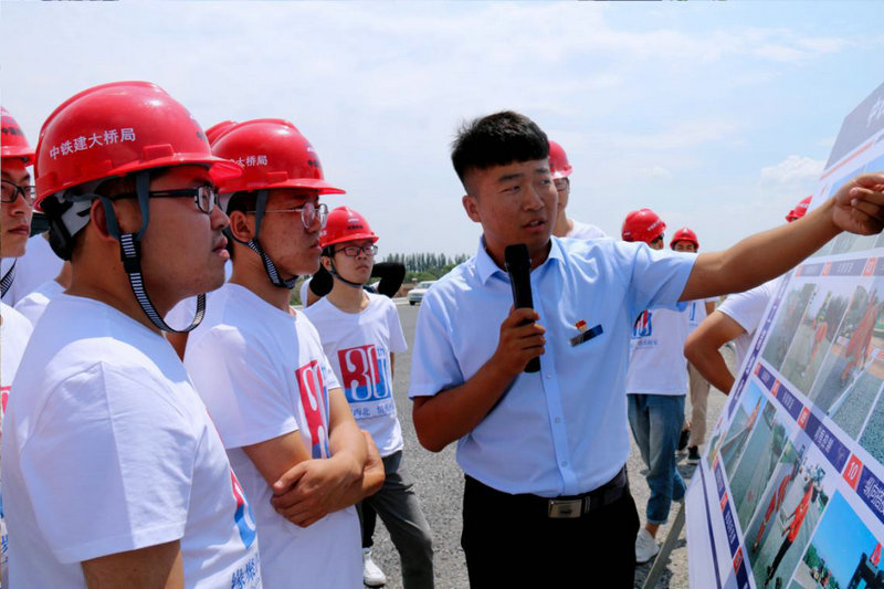 在建項目參觀活動中,22名新學(xué)員在公司業(yè)務(wù)部室的組織下,前往京藏JZLM1標(biāo)、京藏JZ14標(biāo)等項目參觀學(xué)習(xí),并觀摩了將在下半年開通運營的銀吳客專銀川機場黃河特大橋,通過參觀,畢業(yè)生切身了解了今后的工作環(huán)境和方向。參觀學(xué)習(xí)之余,畢業(yè)生代表同京藏JZ14標(biāo)項目部職工開展了一場籃球友誼賽。賽場上,球員在一次次進攻與防守中盡顯了團隊合作的力量,最終比賽以30:30的比分宣告結(jié)束。