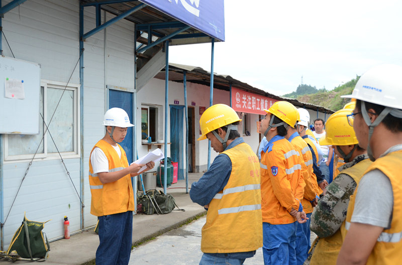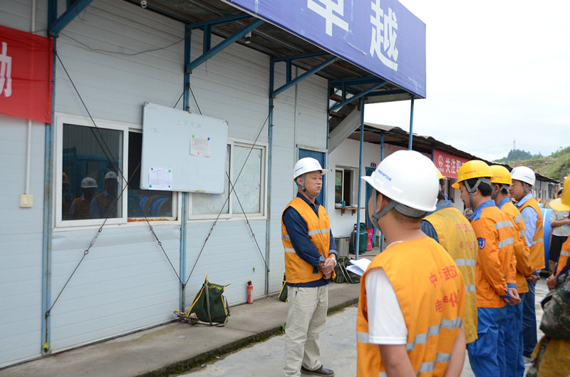 安質(zhì)主管陳平是一名老黨員了,他耐心的提醒著工人朋友們本周施工作業(yè)需要注意的安全事項,逐一檢查了各班組人員的安全保障措施,配齊了防護用品。書記譚永勝是接觸網(wǎng)專業(yè)的老技術(shù)員,有著幾十年的接觸網(wǎng)工作經(jīng)驗,對本周施工作業(yè)做了補充安排,對面臨的技術(shù)難題提出了獨到的解決辦法。接著他鼓舞大家,現(xiàn)在正是決戰(zhàn)7·30的關(guān)鍵時期,各班組人員一定要齊心協(xié)力,相互配合,不論面臨的任務(wù)有多艱巨,都要有信心,更要有決心,保證圓滿完成本次施工任務(wù)。最后他叮囑到,“你們的家人滿懷不舍的把你們送到工地,你們不要讓他們擔心,一定要平平安安的回家”,他告誡大家一定要注意安全,特別是高空作業(yè),要相互監(jiān)督,相互提醒,千萬不能發(fā)生安全質(zhì)量事故。