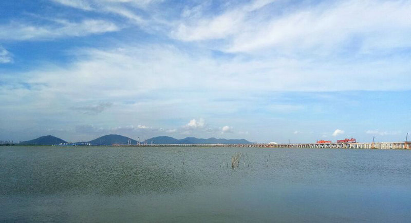 珠海洪鶴大橋HHTJ4標(biāo)段橋梁樁基均位于鶴洲南圍墾區(qū)魚(yú)塘中,魚(yú)塘水深,淤泥層厚,且時(shí)常有臺(tái)風(fēng)暴雨,項(xiàng)目工期緊,任務(wù)重,工程難度大。為此,項(xiàng)目一開(kāi)始就以快速推進(jìn)施工生產(chǎn)為工作重心,以下達(dá)的節(jié)點(diǎn)工期為目標(biāo),集結(jié)各種資源,細(xì)化施組,精心謀劃,想方設(shè)法克服諸多不利因素,搶晴天,戰(zhàn)雨天,在鶴洲南圍墾區(qū)上完成了一個(gè)又一個(gè)重要的工程挑戰(zhàn)。