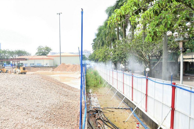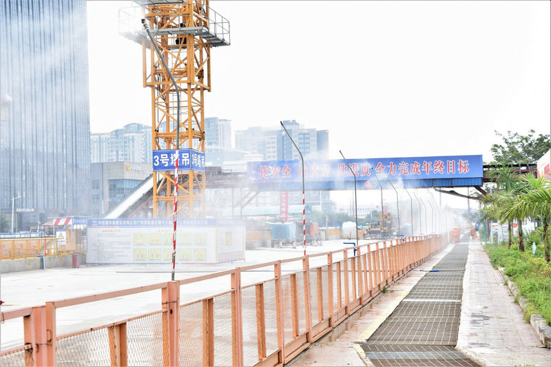 “皮帶運(yùn)輸機(jī)安裝的坡度大,皮帶上的石子容易打滑,對(duì)基坑內(nèi)施工人員會(huì)造成安全隱患;坡度小,雖然能保證石子運(yùn)輸平穩(wěn),但勢(shì)必會(huì)增加皮帶的節(jié)數(shù),這一節(jié)也要20多萬(wàn)啊”,在王強(qiáng)勞模創(chuàng)新工作室,項(xiàng)目經(jīng)理王強(qiáng)與他的創(chuàng)新工作室團(tuán)隊(duì)發(fā)動(dòng)了頭腦風(fēng)暴。同時(shí),項(xiàng)目部還邀請(qǐng)外部專家來(lái)協(xié)助皮帶運(yùn)輸機(jī)的安裝,經(jīng)過(guò)反復(fù)試驗(yàn),發(fā)現(xiàn)坡度28度是最理想的狀態(tài)。為了保證大的石塊也能順利運(yùn)送,項(xiàng)目部還在皮帶首節(jié)傳送處還安裝了一臺(tái)破碎機(jī),機(jī)器內(nèi)有個(gè)篩子似的裝置,挖機(jī)將基坑內(nèi)的土石方倒入破碎機(jī),大的石塊就會(huì)被截留住破碎成小石塊,然后順著皮帶運(yùn)輸機(jī)的行走軌道,輸送到指定中轉(zhuǎn)區(qū)域。在中轉(zhuǎn)區(qū)域,項(xiàng)目部還安裝了自動(dòng)噴淋除塵設(shè)備,100多個(gè)噴淋頭,起到了降塵、環(huán)保作用。