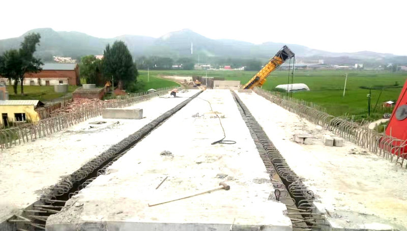 該橋為哈爾濱至牡丹江鐵路電氣化改造工程而設(shè),哈牡左線交叉點鐵路里程為K60+933.25,全長215米, 橋面寬8.0米,兩側(cè)設(shè)置0.5米寬防撞墻,其中第5孔跨越濱綏電氣化鐵路。立交橋上部結(jié)構(gòu)采用5×25m+3×30m預(yù)力混凝土簡支轉(zhuǎn)連續(xù)小箱梁,梁高1.4米,頂寬中梁2.4米、邊梁2.4米、底寬1.0米;下部結(jié)構(gòu)采用柱式橋墩,鉆孔灌柱樁基礎(chǔ),橋墩柱直徑1.2米,橋墩樁基直徑1.5米;樁基類型為摩擦樁。橋臺采用肋板式橋臺,工字型承臺,樁基礎(chǔ),樁徑為1.2米;橋墩均設(shè)置地系梁橫向聯(lián)結(jié),全橋蓋梁采用鋼筋混凝土結(jié)構(gòu)。