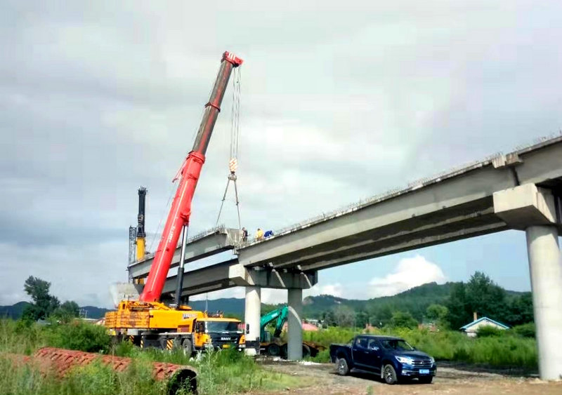 中鐵二十三局集團二公司哈牡電氣化項目部,針對連日來雨水頻繁,鄰近既有線施工安全風(fēng)險高,現(xiàn)場作業(yè)面狹窄等不利因素,強化施工過程控制,嚴(yán)把安全質(zhì)量關(guān),責(zé)任到人保障措施落實到位。對箱梁運輸、梁體就位、汽車吊梁、臨時支座安裝、隊伍組織、安全技術(shù)保障等進行了詳細(xì)安排部署,制定了嚴(yán)密的箱梁架設(shè)專項施工方案、作業(yè)流程圖和應(yīng)急預(yù)案,并通過論證。同時,重點做好提、運、架梁過程中的安全監(jiān)控和既有線施工安全防護。由于準(zhǔn)備工作充分、措施具體、分工明確,責(zé)任落實到崗到位,確保了安全、高效順利完成架梁施工任務(wù)。