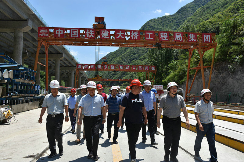 調(diào)研一行人員先后來到雙臺隧道進口、2#梁場、雞公寨隧道出口。聽取了建設(shè)單位全線施工進度、梁場建設(shè)及梁片架設(shè)、征地拆遷等方面的匯報。