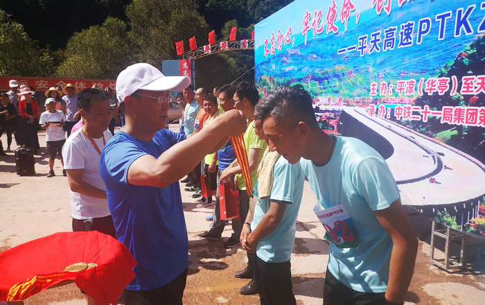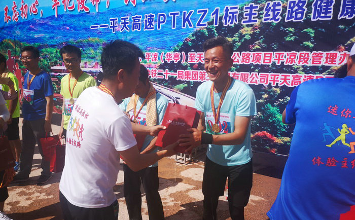 魏惠民為獲獎(jiǎng)選手頒發(fā)獎(jiǎng)品哨聲一響,參跑者相繼以飽滿的熱情和激昂的態(tài)勢沖出了起跑線,踏上了征程。在比賽過程中,項(xiàng)目員工呈現(xiàn)了挑戰(zhàn)自我、永不放棄的精神,大家一路相互鼓勵(lì),齊頭并進(jìn),最終全部完成比賽,充分展現(xiàn)了鐵建人不畏艱難團(tuán)結(jié)一致的優(yōu)良精神。