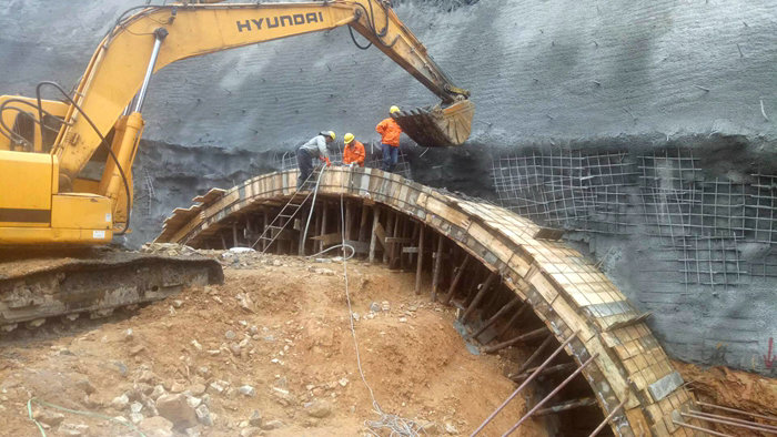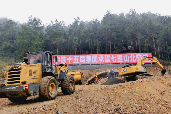 截至8月19日,由公司承建的G353修水擴建項目七里山北隧道進口掘進破百米大關,各工序循環(huán)作業(yè)進入正常有序施工狀態(tài)。 七里山北隧道全長243米,其中:進出口明洞27米,隧道凈寬12.75米,設計時速60km。從長度看是一座小隧道,從地質(zhì)條件來說,施工還是有一定難度。該隧道地質(zhì)為Ⅳ、Ⅴ級圍巖。Ⅴ級圍巖為強風化頁巖,巖體極破碎,有軟弱夾層泥炭質(zhì)土;Ⅳ級圍巖為中風化砂巖,存在裂隙水。